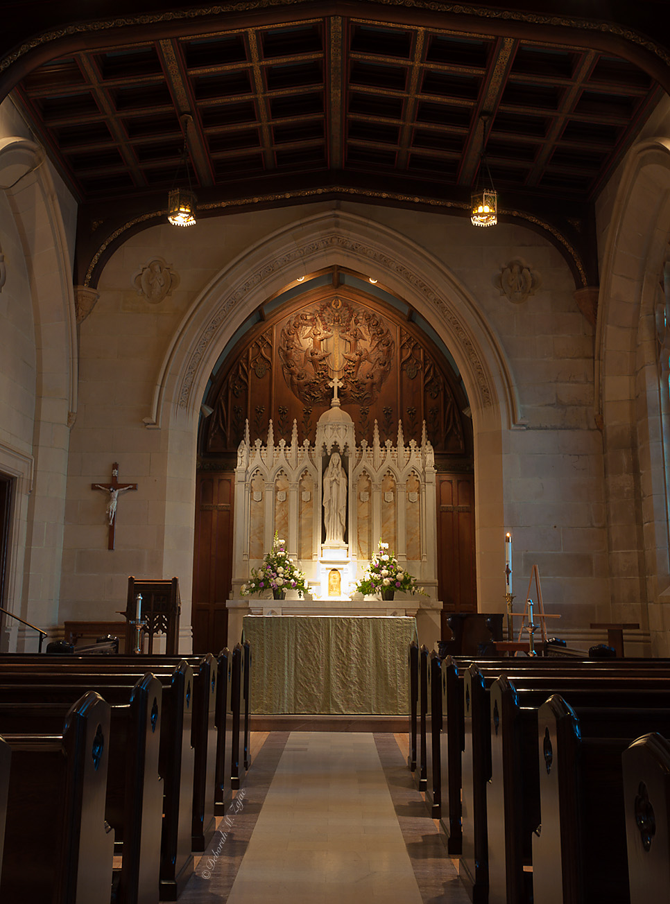 “Alphonse Peeters et Fils of Liege, Belgium, carved the statues of the Blessed Mother in the Lady Chapel”
