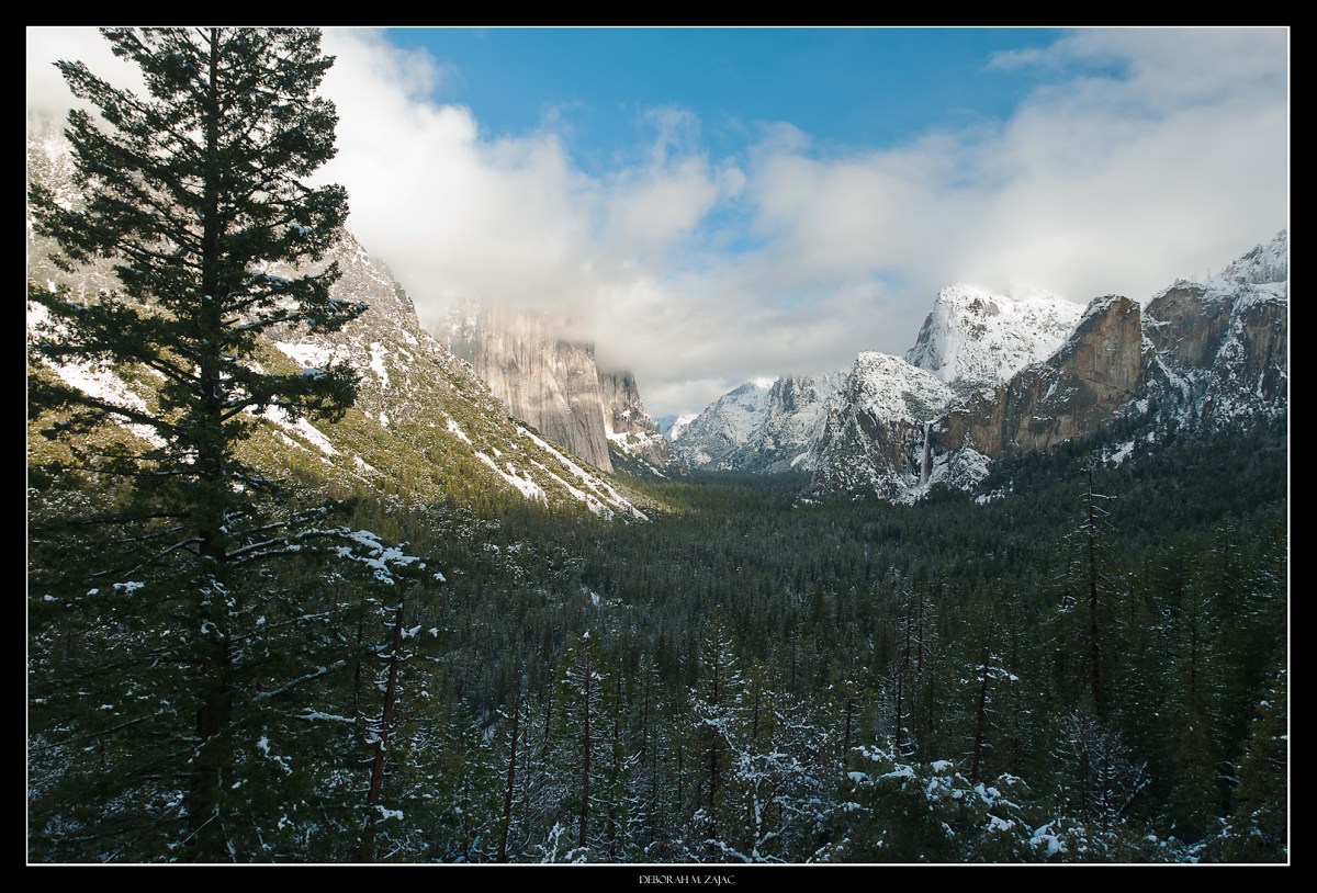 Often times we are shooting very contrasty scenes. Example: A bright sunny day at the beach. You shoot the scene and see your sky looks wonderful, but your foreground is dark. Or your foreground looks wonderful, but your sky is blown or washed out. We can balance the scene using Graduated Neutral Density filters. The sheet filter is gray on the top which gradually fades to the center of the filter to a soft or hard edge. The rest of the filter is clear. In the scene below Snow capped Half Dome and Cathedral Rocks were “hot” meaning very bright. To balance the scene I used a Singh-Ray 3 stop Graduated Neutral Density filter.