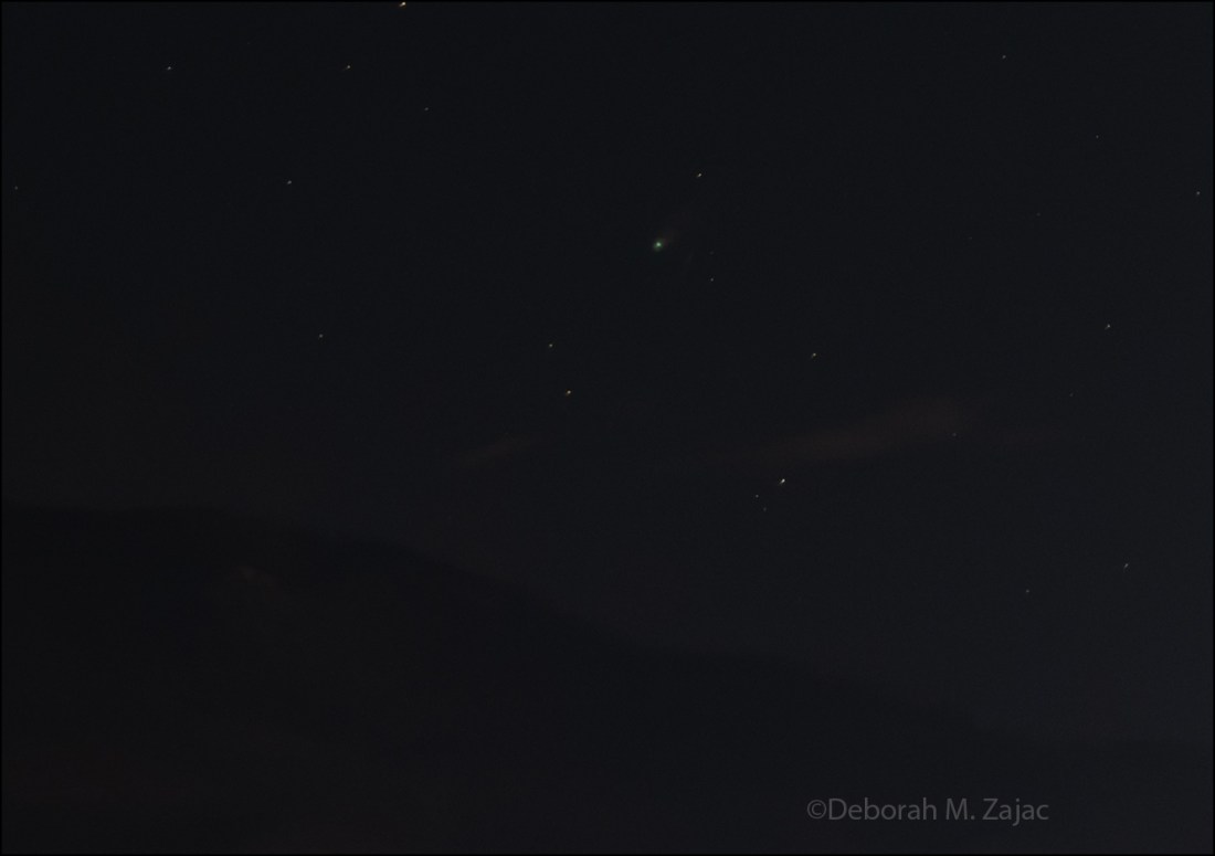 So last night a friend and I went north to a spot I know that had more open sky. It took us a while to find it but, we did. My old lens had a bit of trouble focusing on my newish bigger sensor D810 but, once I uploaded my images I found I had several decent shots of the comet with a hint of its tail too.