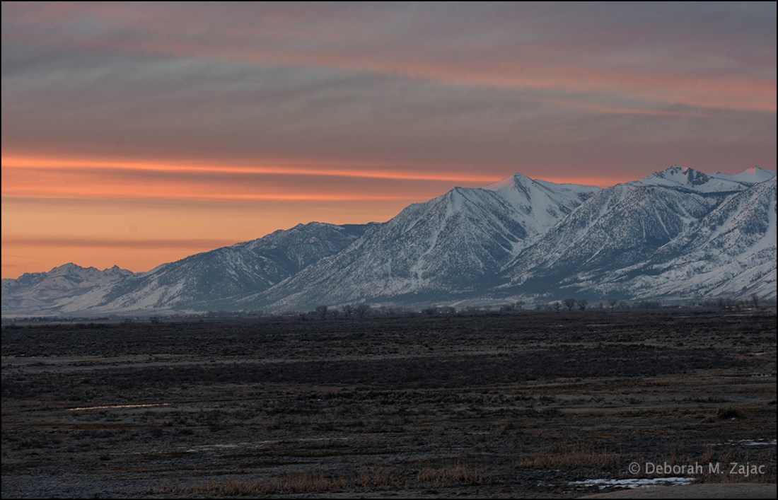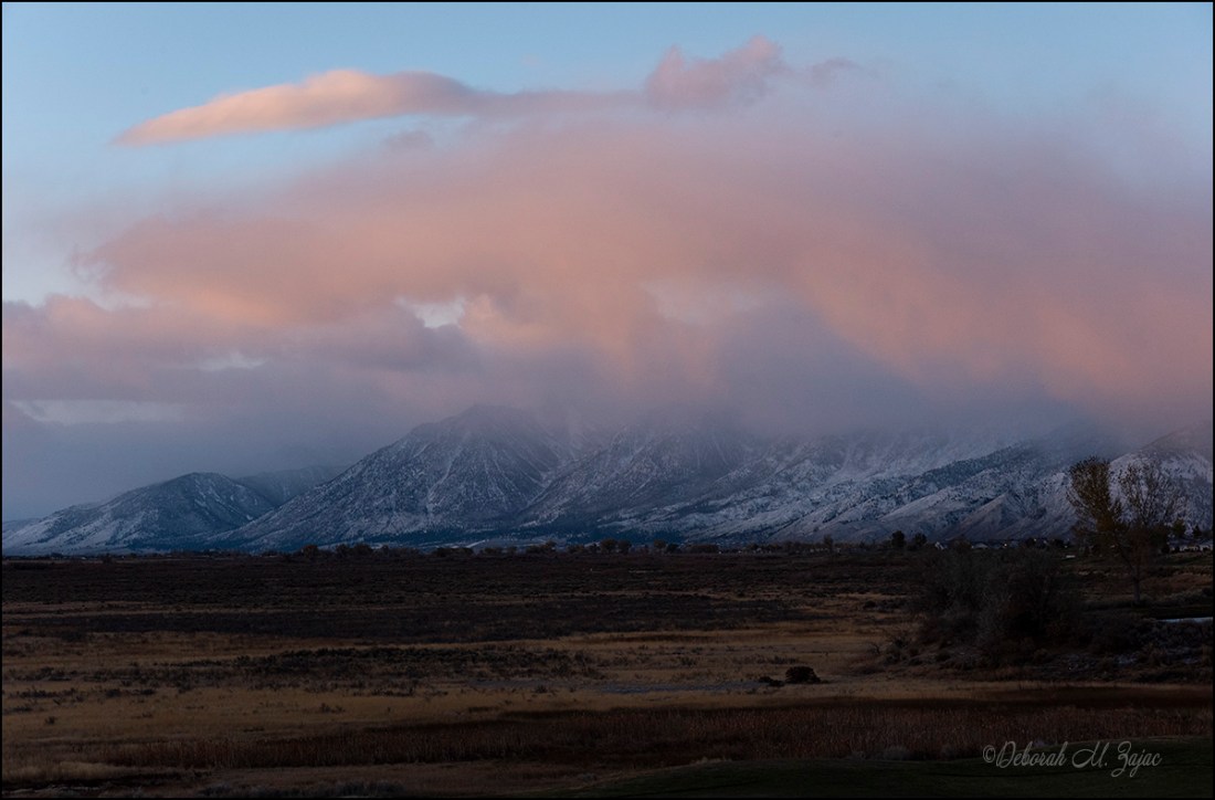 I woke up hoping the sunrise would be pretty and there would be snow on the valley floor, alas no snow on the valley floor and barely any on the lower PineNut Mountains, but the Carson Range and Eastern Sierras are gorgeous this morning.