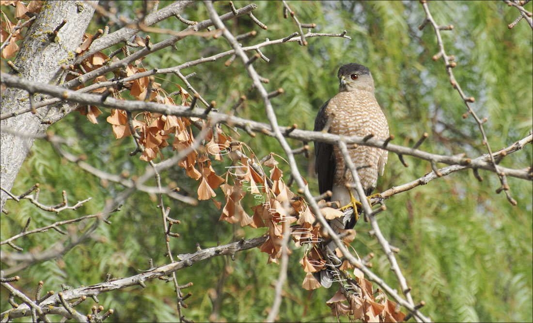 Update: A reader Tj of TjFivephotography emails, ” It looks more like a Sharp-shinned Hawk or a Cooper’s Hawk b/c this one doesn’t have the markings under the eyes like falcons do.”