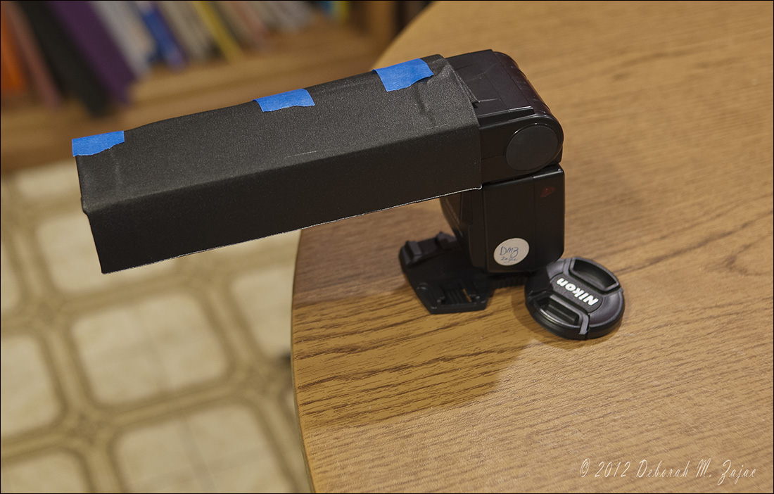 I took the photo of the set up with a Nikon D300s and 24mm f2.8 AF-D and on-camera flash.